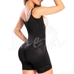 Faja moldeadora con doble compresion en abdomen, cremallera frontal seminvisible gafetes continuos de doble posicion en la parte interna, realce natural de gluteo, cremallera perineal y protector amplio en zona íntima, controla y guarda los excesos de piel que se marcan con la base del brasier proporcionando una figura más estilizada dando una cobertura alta en la zona de la espalda, hombros anchos tipo esqueleto para más comodidad. Largo a la pantorrilla.