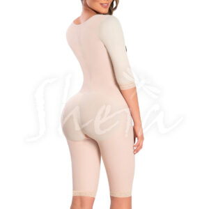Vestido de baño 2 piezas, tanga talle alto con control de abdomen y pretina ergonómica para mayor ajuste, comodidad y horma, Top con mangas largas en malla lycrada, escote profundo en espalda.