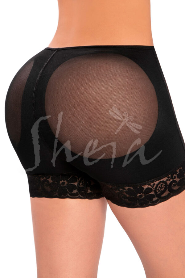 Cachetero en powernet forrado en lycra nylon fría con encaje siliconado en pierna que se adhiere a tu piel evitando el entorchamiento y proporcionando mayor ajuste y comodidad, pretina en sesgo liso y plano, realce natural de glúteo, cola prehormada en powernet en la parte externa y al interior trabajo de realce de gluteo con pinzas y refuerzos en cadera.